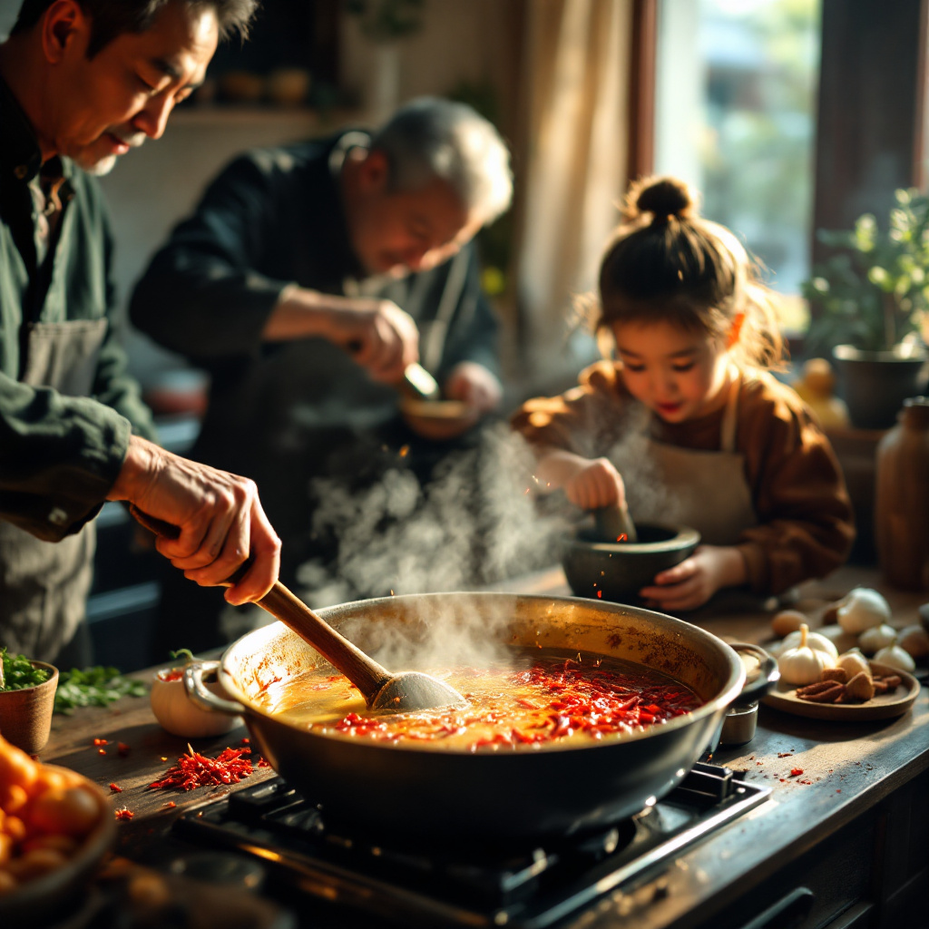 那時的辣椒油不僅僅是調味品,它承載著彼此之間的關懷與溫情。廚房裡的每一勺辣椒油,像是一種無聲的問候,每一碗都盛滿了對鄰里的心意。大家互相請教學習,在火候與手藝的交融中,凝結出家鄉特有的味道。